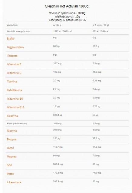 The tasty, crisp Activlab HOT drink   will give you energy and protect your body during the most intense workouts! Carefully selected additives enhance the effect of the conditioner. L-carnitine will delay fatigue during exercise and help you burn more fat.