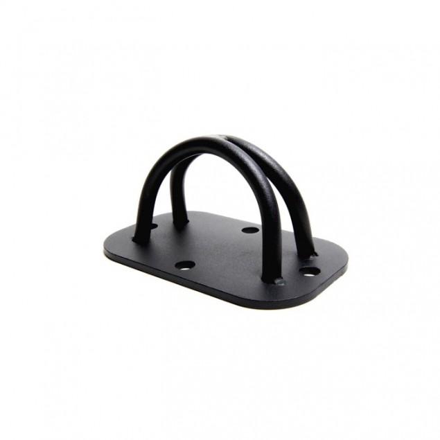 Universal double half-ring anchoring and wall mounting plate with 11 mm holes. The Universal Wall Anchor is gauged for suspension training tools such as rings and the Flying gear series. Strong and durable. Color: micaceous iron oxide black pigment.