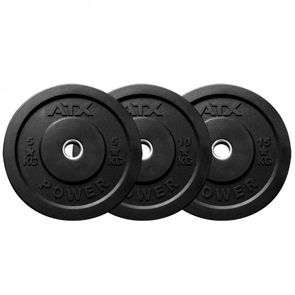 The ATX ® Rough Rubber Bumper Plates got their name due to their slightly structured surface finish. The highly compressed discs with a hardness level of 90 (according to Shore A) have a low rebound (bounce). Over 10,000 drops on our drop machine guarantee first-class, robust quality. The crimped inner ring made of stainless steel ensures fast and safe loading and unloading of the barbell. The ATX ® Rough Rubber Bumper Plates are high quality training discs for every training facility with a top price / performance ratio.