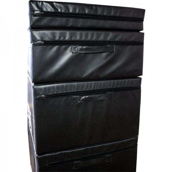 The boxes have sewn-on Velcro strips and they can be connected to each other in various heights.