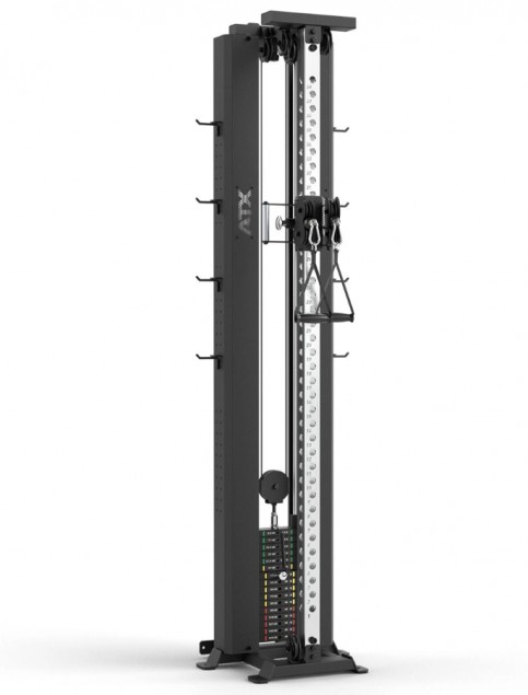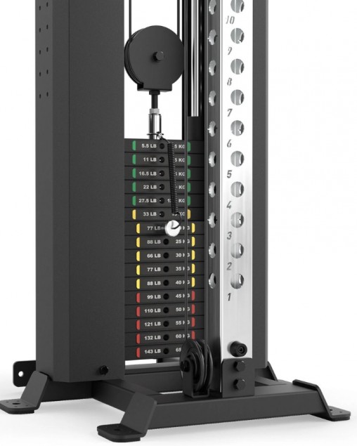 Space-saving design, precise weight control and silky-smooth running characteristics characterize this professional cable pulley station.