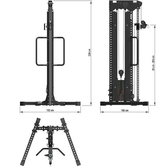 The ATX ® Cable Tower impresses with its excellent running properties and first-class processing quality. The height-adjustable swivel castor unit can be easily adjusted with just one hand. This cable pulling station is completely free-standing and has a compact footprint of 105 cm in depth and 132 cm in width.
