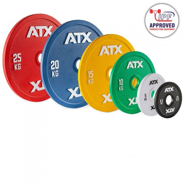 Thanks to their extra-slim design, these ATX ® weight plates are ideal for loading a maximum amount of weight onto the bar, as is required, for example, in powerlifting/powerlifting competitions or in strongman training. These ATX ® weight plates are also an excellent choice for maximum loading of multi-gyms. The abrasion-resistant coating in the international color code and the characteristic design with raised (raised) logo and KG information give this disc a powerful look.