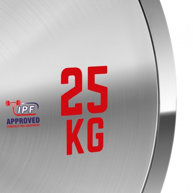 Made entirely of solid steel, these discs are calibrated by machine and thus ensure an extremely small weight deviation of +/- 10 grams or 0.25%. The discs are fully chromed and coated with an international color coded vinyl coating. Of particular note is the color-coded outer ring, which is incorporated into the discs as an inlay. A perfect weight plate for training and competitions, which impresses with its quality and visual features!