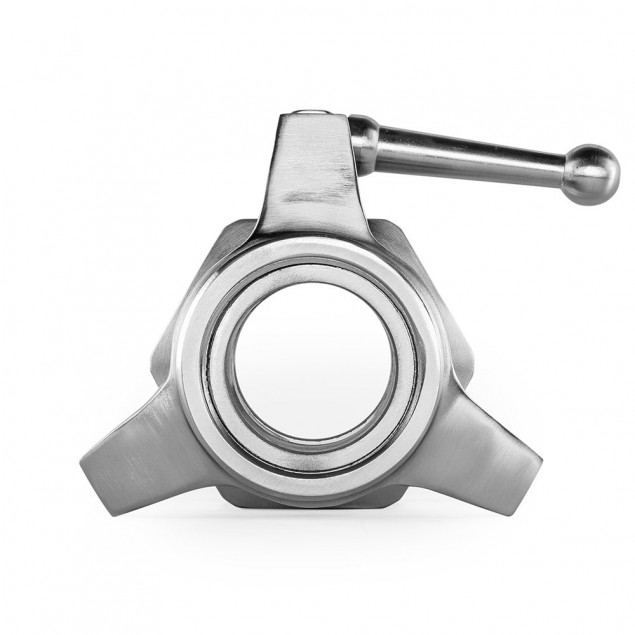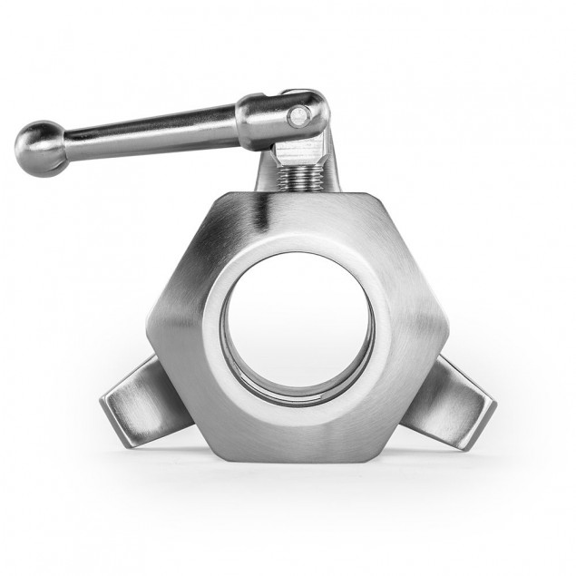 The large clamping lever enables the lock to be firmly and securely fixed to the weight plate holder, whereby the clamping screw does not press directly onto the weight plate holder, but the contact pressure is generated by an internal metal band on the holder. This prevents damage to the surface of the weight plate holder.