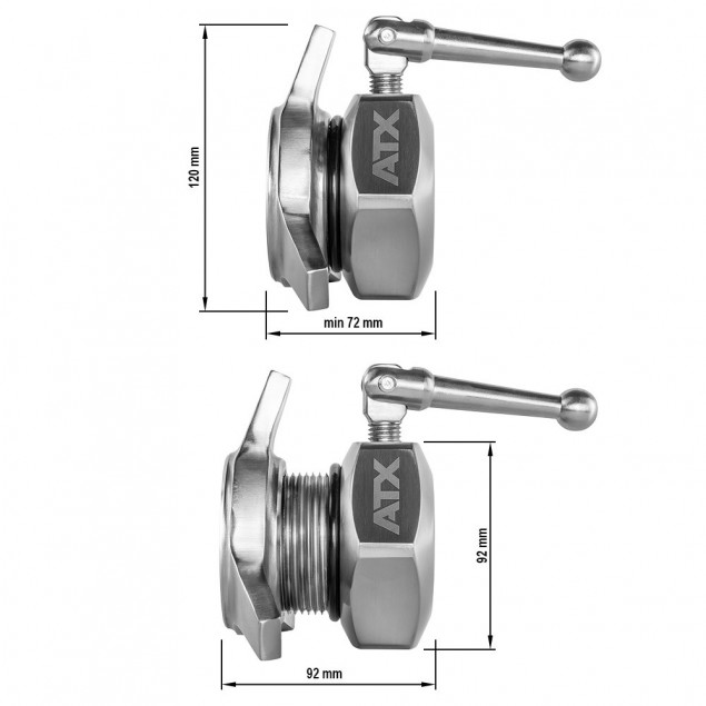 The ATX ® Competition Star closures are professional closures - made of solid cast steel with high-quality chrome plating and lasered ATX ®Logo, for a strong and secure fixation of the weight plates.