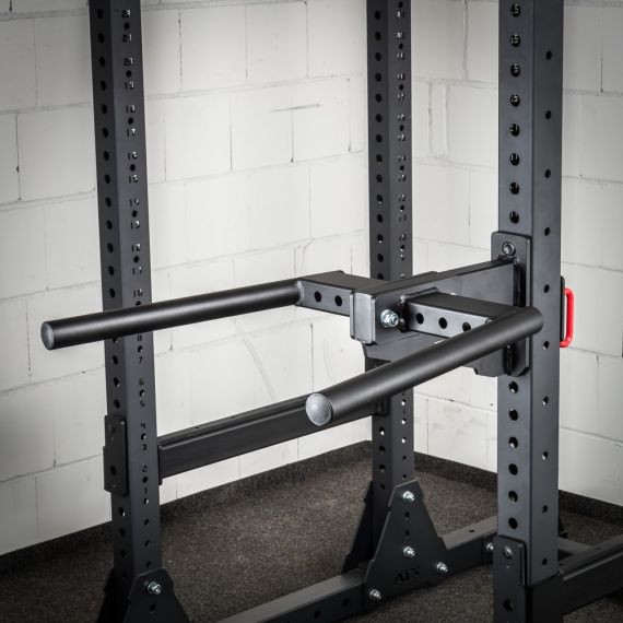 Dips or the parallel bars are part of the classic repertoire of bodyweight exercises and are experiencing a comeback in the calisthenics scene. It is not uncommon for dips to be performed here with an additional weight of well over 100 kg. Our solid dip bars allow loads of any intensity - and can easily be attached directly to the RIG or rack. Compatible with all ATX ® RIGs and power racks of the 800 series (and generally all 8 x 8 cm racks with a 21 mm hole)!