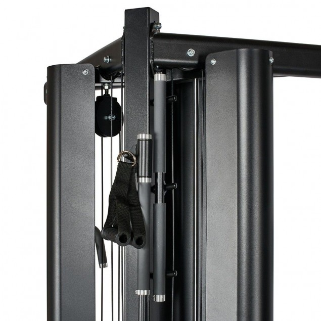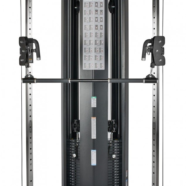 Compact duplex train station for a variety of trainings. The extra fine weight gradation makes this pull station ideal for functional exercises and rehabilitation. The height of the pull rollers can be adjusted 17 times, this ensures that the optimal pull height is set. The roller units, which can be swiveled by 180 °, allow a large training radius for dynamic pulling exercises. The perfect workmanship and the silky smooth running properties are outstanding features of this first-class dual train station.