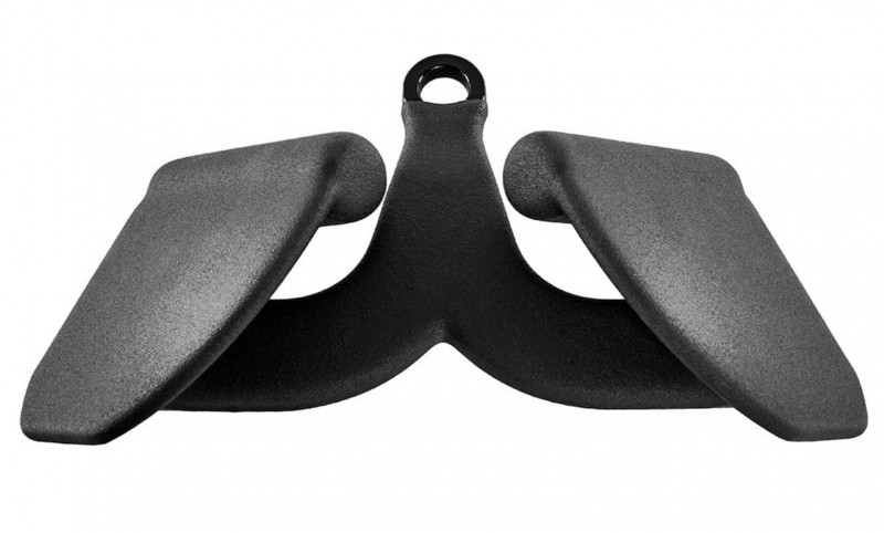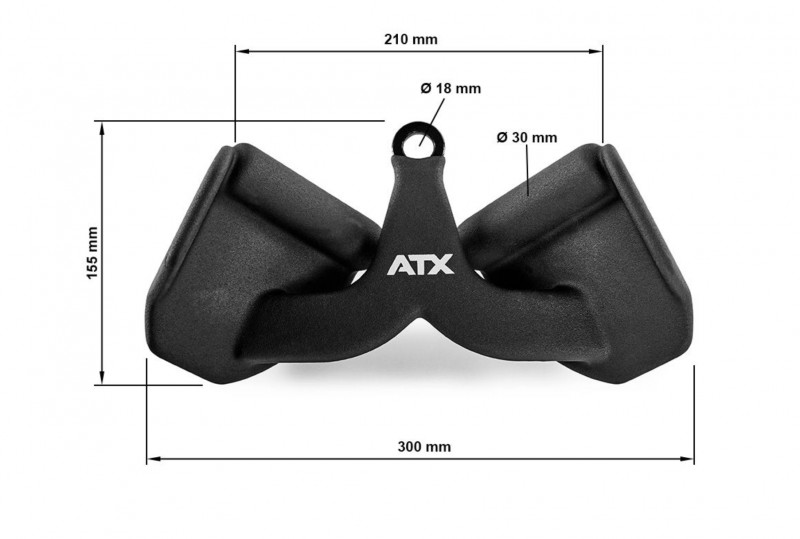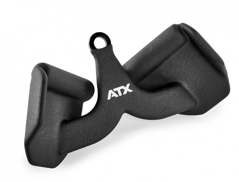 The extended grip fin supports the stabilization of the wrist axis and thereby helps to keep the elbows at the correct contraction angle to achieve optimal muscle contraction. The handle is made of 8 mm thick steel and coated with a 3 mm thick neoprene layer. The mounting hole has a diameter of 18 mm and is compatible with all standard carabiner hooks with a diameter of 6 - 10 mm. In addition, the coating prevents paint damage to frames and equipment.
