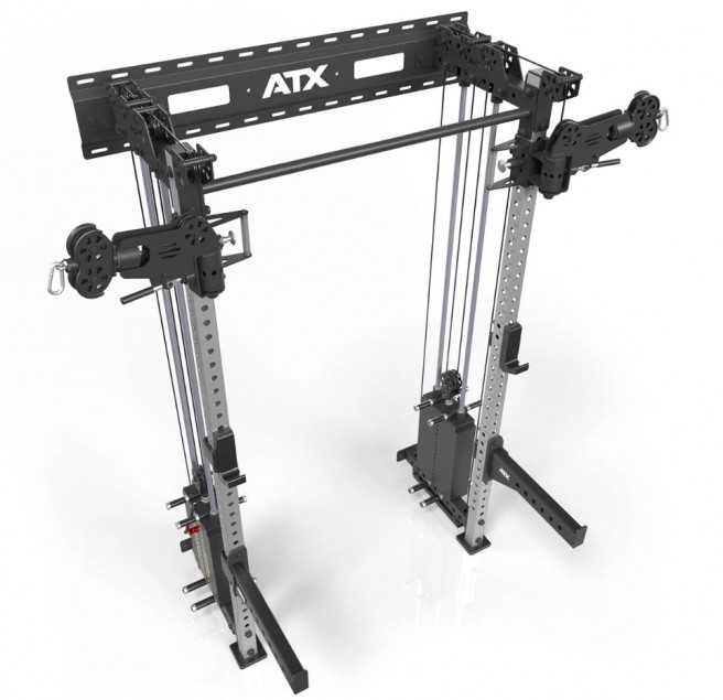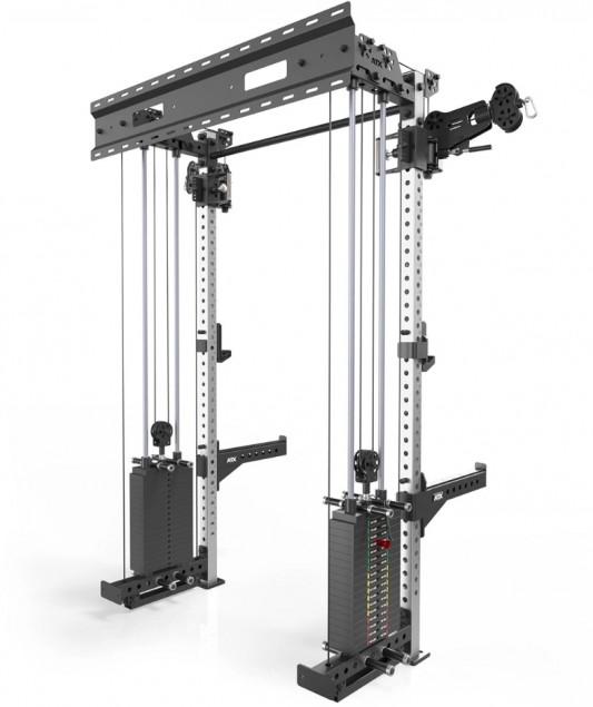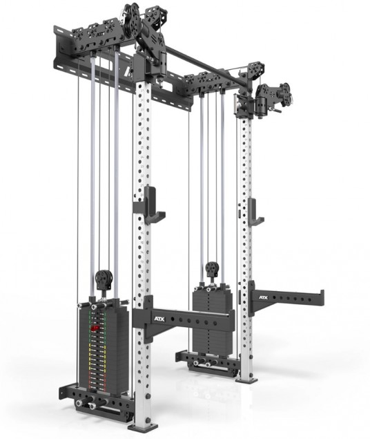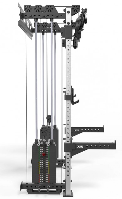 Constructed from sturdy 60 x 60 x 3 mm square steel tubing, the station can support loads of up to 400 kg. Sliding bushings in the plug-in weights and ball-bearing pulleys ensure silky-smooth operation.