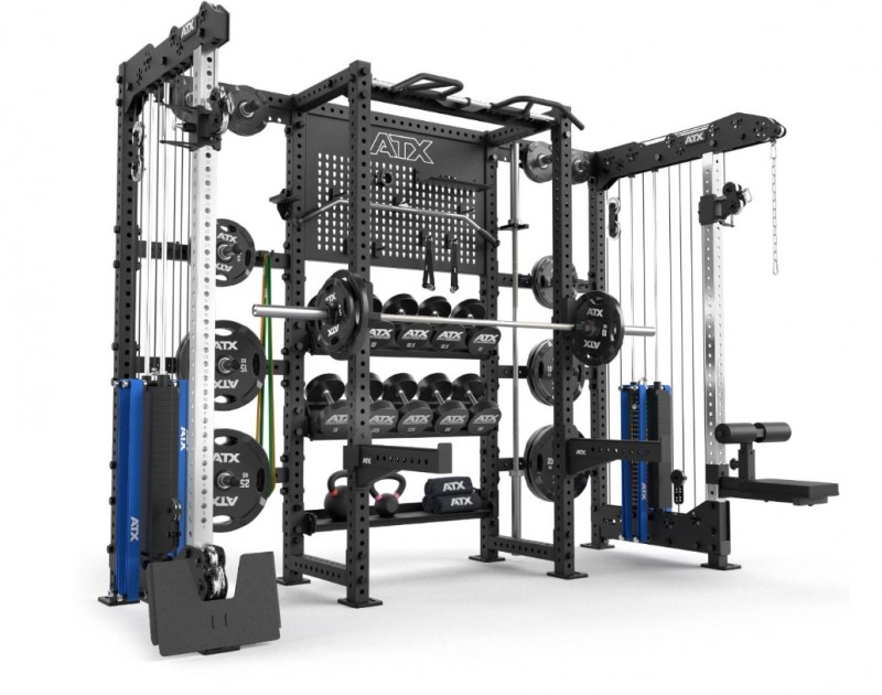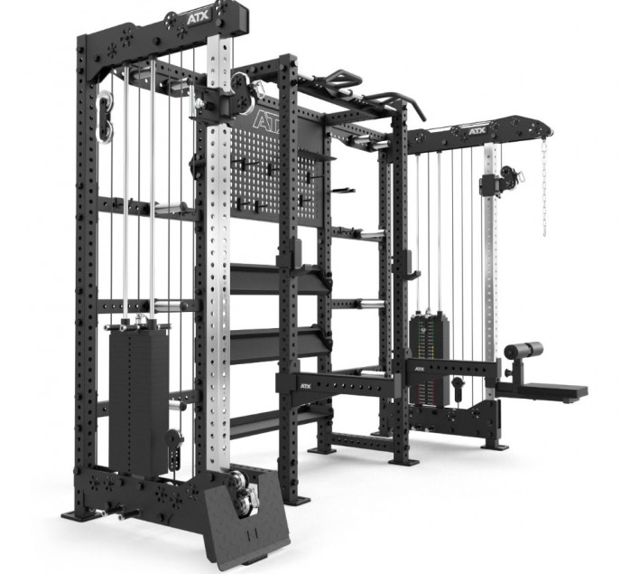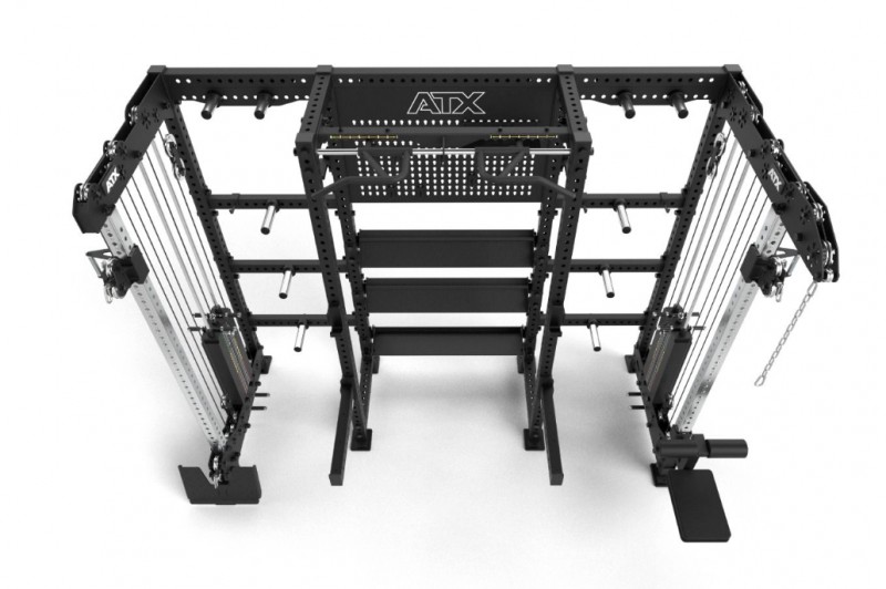 When developing this ATX cable rack, it was important to us to create a complete station that covers all the relevant needs of a professional workout area and creates a clear and organized training environment . The arrangement of the stations, lined up next to each other with cross-connected storage systems, creates the characteristic look of a training wall, which led to the name "The Wall ."