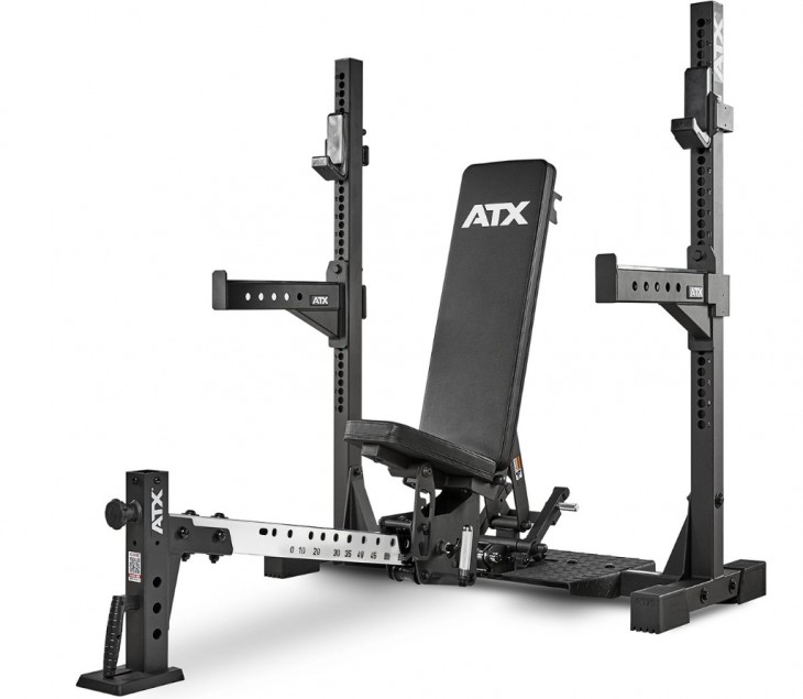 This multi-press bench from ATX® allows for 15 different positioning angles, enabling all relevant barbell pressing positions—from negative bench presses to flat bench presses to overhead presses—all with professional and safe execution.