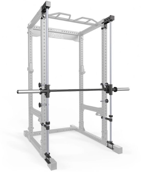 Thanks to the highest quality components, such as the 30 mm thick, hard-chrome-plated solid steel shafts and the quadruple linear ball bearings, this Multipress option offers first-class running characteristics. The 30 mm thick solid steel shafts ensure maximum rigidity and thus minimal deflection, even with heavy weights. The bearing bushings, each with two high-quality linear bearings, ensure smooth and tilt-free operation. The six locking bolts can be quickly and easily adjusted to individual heights, allowing for individual adjustment of the start/stop positions . The emergency rests are individually adjustable and ensure maximum safety during training. The barbell bar (Ø 30 mm) is also made of solid steel and features non-slip knurling and grip width markings. A Multipress option made of the highest quality components, in a heavy-duty, solid design. Suitable for attaching additional options! Option - Leg Press