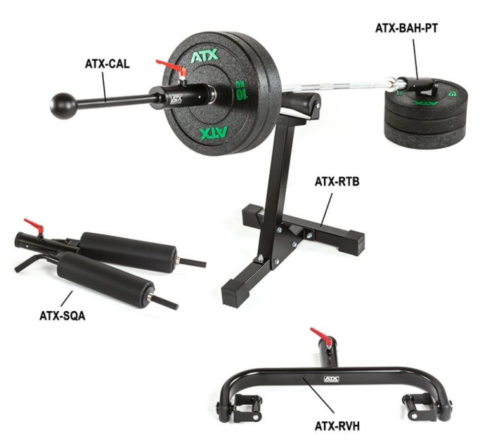 Barbell bar/discs, barbell hinge, club attach, squat attach and revolving handle are not included in delivery