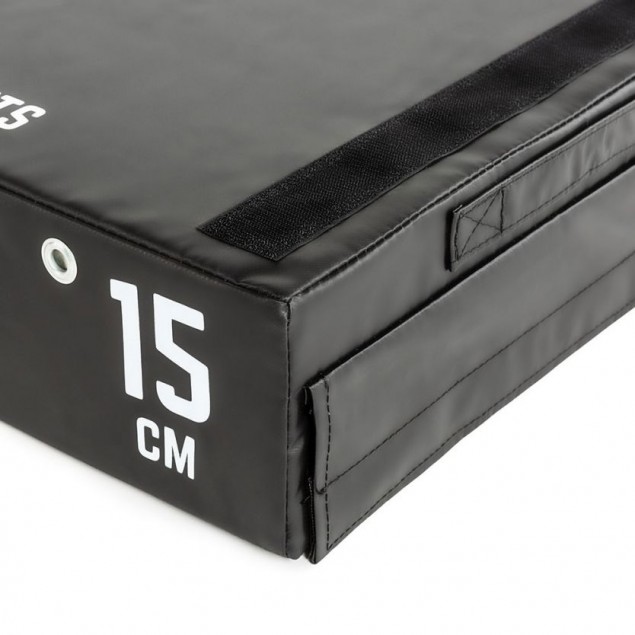 The top and bottom are provided with firmly sewn Velcro strips, so several blocks can be connected to variable heights. Optionally available stop wedges, which are also attached via the Velcro strips, may prevent the dumbbell from rolling off.