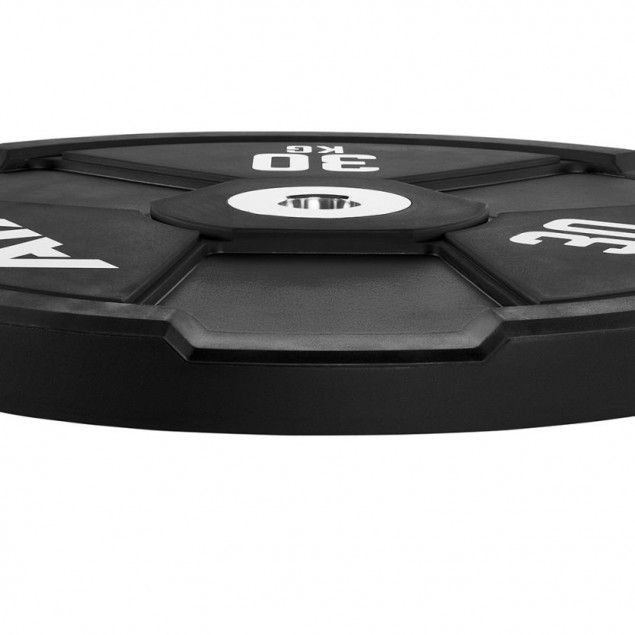 With a weight of 30 kg / disc, the discs also offer a heavy basic weight. The discs are made from the highest quality premium natural rubber, the inner chrome-plated solid steel disc is fully cast and has an internal mount of 50.5 mm.