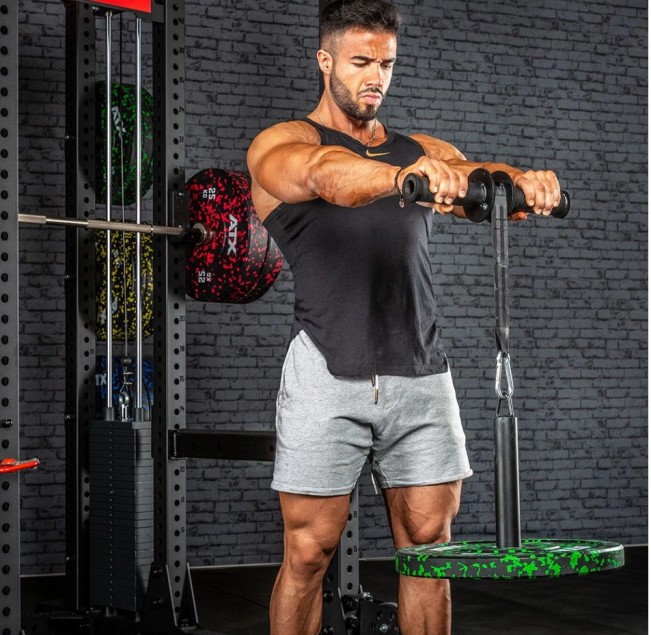 The ATX ® Wrist Roller consists of a two-part steel handle with a tear-resistant nylon band attached to the middle, which is loaded with appropriate weights at the end. By turning / winding the band onto the spool, the forearm muscles and grip strength are specifically trained.