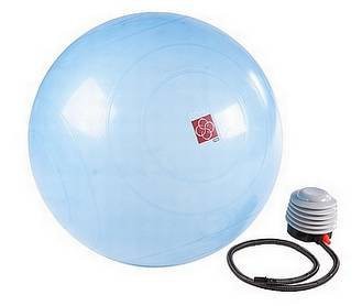 Blue translucent ball with pump, DVD and a 28-page manual.