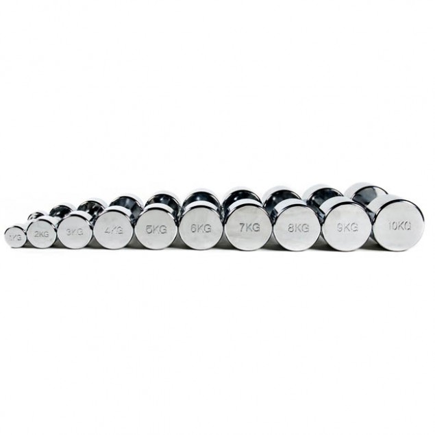 The series is composed by 10 couples of Dumbbells, from 1 to 10kg of weight and with an increase of 1kg from one to another. The Chromed Dumbbells are sold in couples and it is both possible to customize the series or to buy single couples.