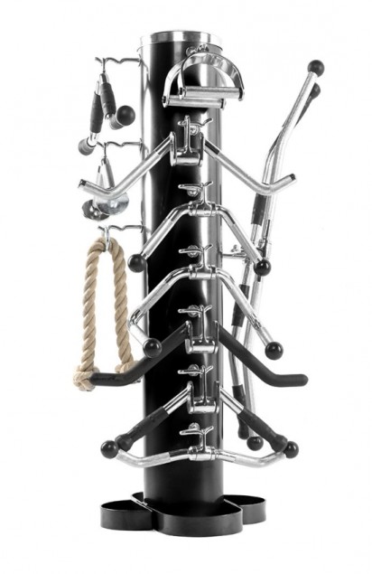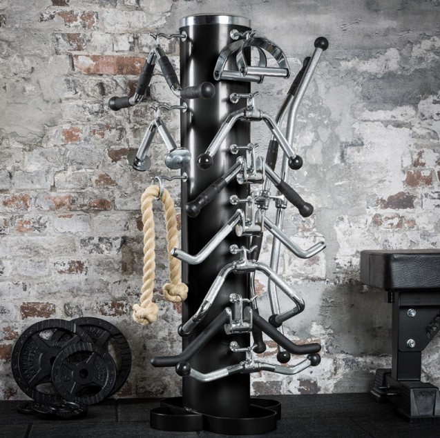 12 chrome-plated storage bolts offer plenty of space for all common grip sizes – from lat pulldown bars to tricep ropes! The modern, round design, including a chrome-plated cover cap, not only adds a modern touch but also professionally enhances your training environment!