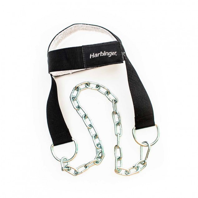 The Harbinger® Nylon Head Harness is constructed with a heavy-duty abrasion resistant Cordura nylon for great strength and durability; and the synthetic shearling pad lining enhances comfort. Designed to help strengthen the neck muscles, the 30" steel chain comfortably and safely enables you to add various size plates.