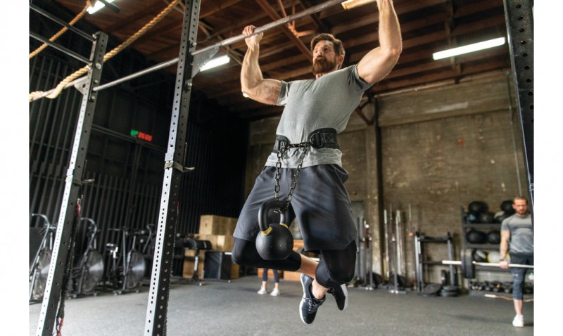 • Features an extended 34" steel chain and carabiner mechanism to easily add weight for chin-ups and dips