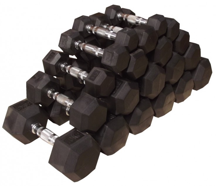Our tried-and-tested compact dumbbells with barbell heads in hexagonal shape that are popular with fitness studios / sports clubs. The almost indestructible design of these compatible dumbbells ensures a long service life. Since all dumbbell components are firmly connected, our Hex compact dumbbells are suitable for the highest professional demands.