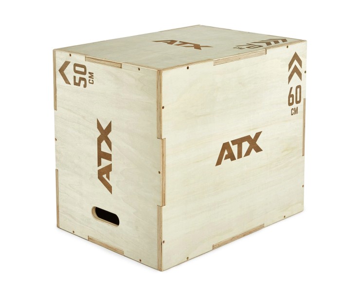 Sturdy plyobox made of natural wood, with flamed ATX ® logo and height information.