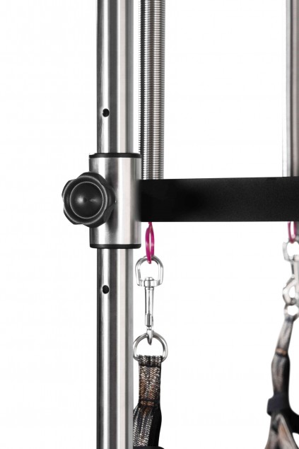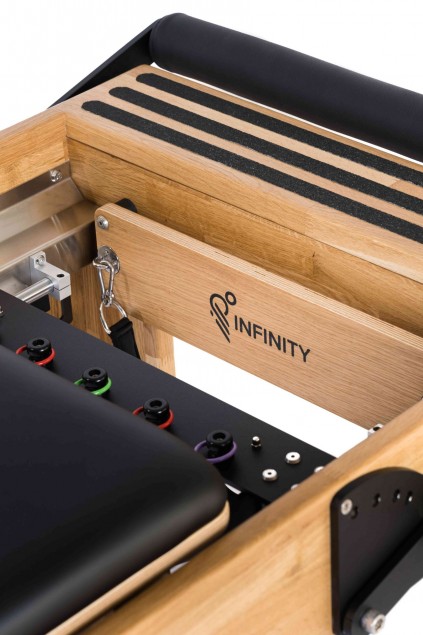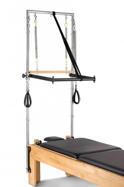 The Galaxy Reformer Tower is made of an excellent quality oak panel and has a stainless steel tower frame thus offering maximum stability and security. The running tracks ensure quiet and perfectly smooth rolling while the footbar ensures high stability in each of the 5 different positions. The multi-position telescopic system offers flexibility and a rich exercise program without taking up extra space.