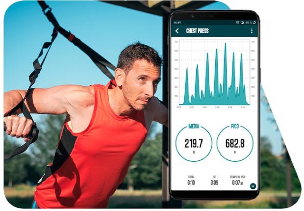 • Innovative and exclusive wireless sensor capable of recording the traction force applied in a wide variety of dynamic and static muscle training actions.