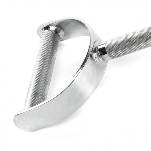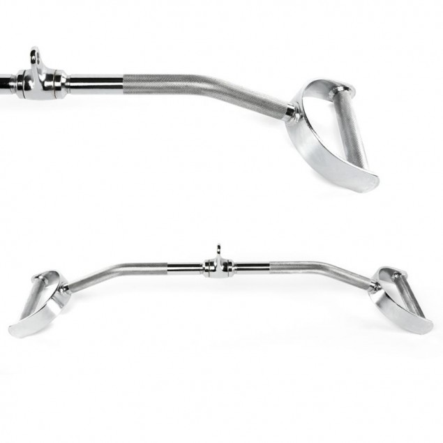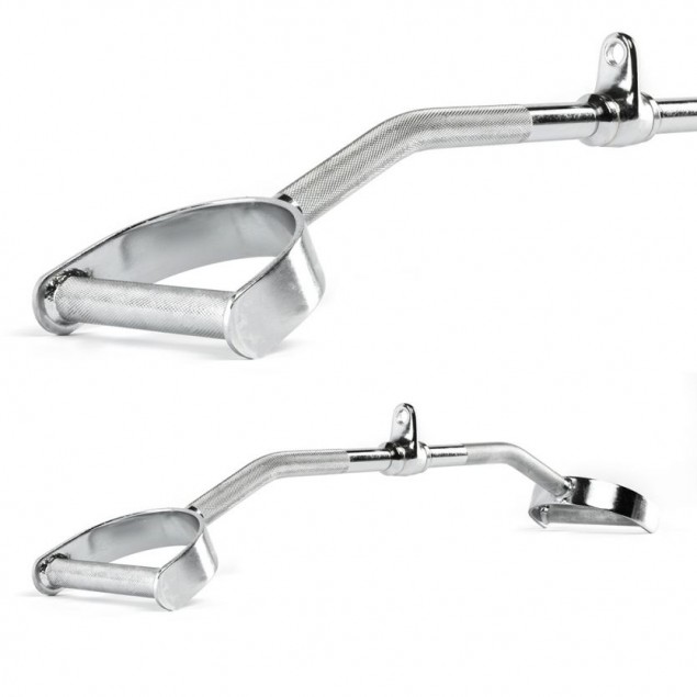 The lat pull bar with curved parallel handle is the ideal handle for targeting your broad back muscle with training stimuli. The curved, angled handle allows you to pull the training weight deep into your back, inducing an intense maximum contraction.