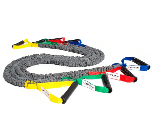 Resistance tubes made from high quality natural rubber with flexible breathable and ergonomic handle. They are nylon covered for extra protection against chafing, moisture and dehydration. Elastic length of 1,24 m + handle.
