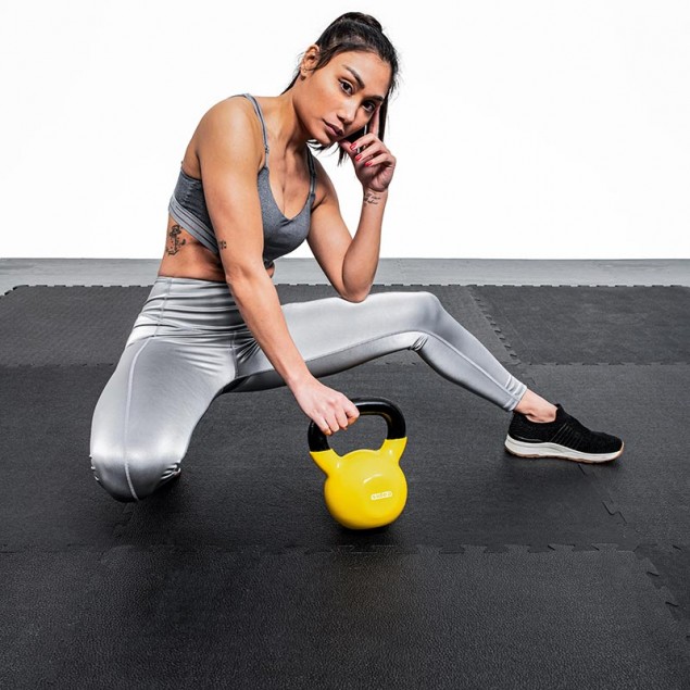 The EVA used is the same as the tatami tiles but EvaGym, has a greater density and hardness, so much so that the 10 mm thick tile weighs 2 kg, like 20 mm thick tatami tiles. On a practical level, this results in greater stability and a lower “gelatin” effect, notwithstanding the high absorption qualities. The tatami is a softer and more rubbery flooring, designed for martial arts, EvaGym is a soft flooring but designed for general training, even with weights, and therefore more compact and stable.
