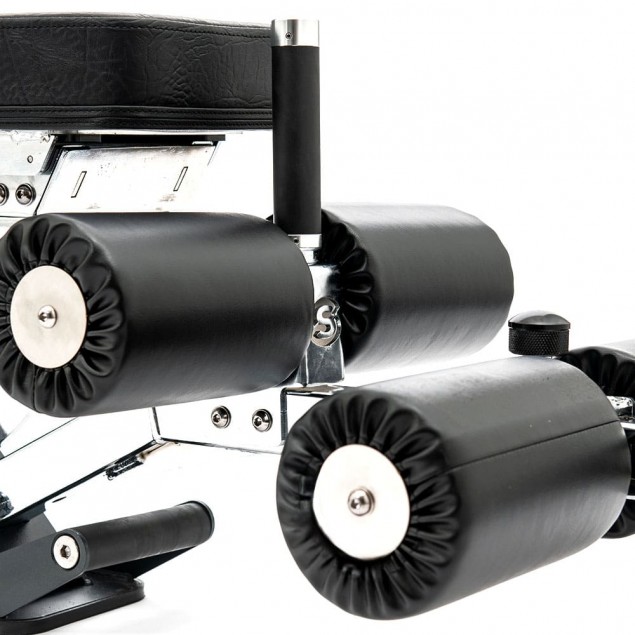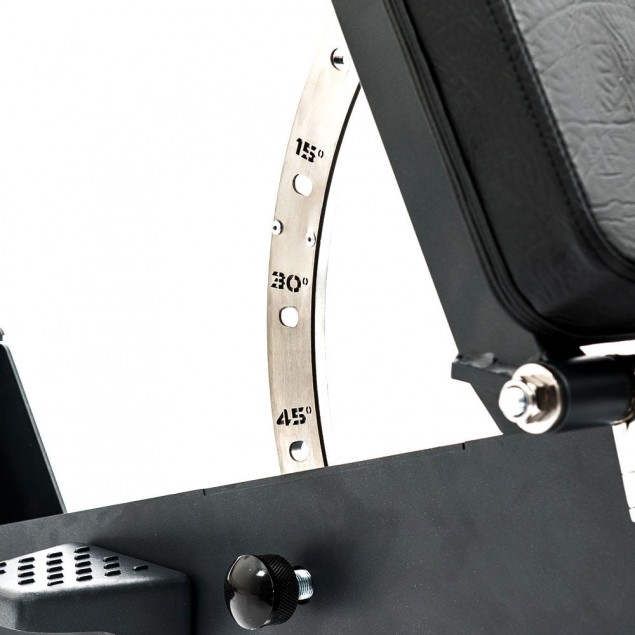 It is precisely the presence of an adjustable leg lock bar, which allows the legs to be firmly secured, along with the two footplates integrated into the frame (designed to facilitate getting on and ensuring correct posture even with the bench at a steep incline), that makes this extreme versatility of use possible.