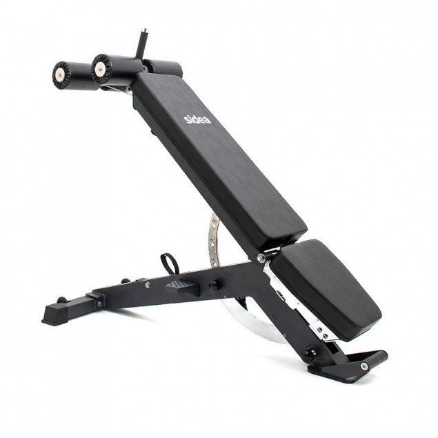 While not offering the absolute stability of a flat bench, with its 59 kg weight, steel supporting structure, and a rapid adjustment system using semi-circular perforated plates with a pop-pin knob, the FLEX BENCH still ensures excellent solidity. This makes it suitable even for weightlifting exercises and particularly useful for flat, incline, and decline bench presses.