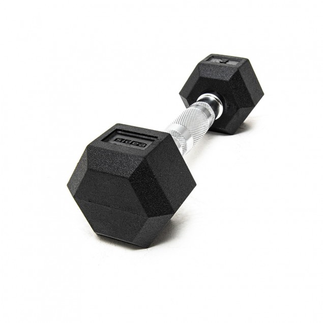 Professional fixed-weight dumbbell with hexagonal rubber-coated plates. Suitable for intense training. These dumbells are distinguished by a robust design and high-quality rubber that guarantees excellent value for money.