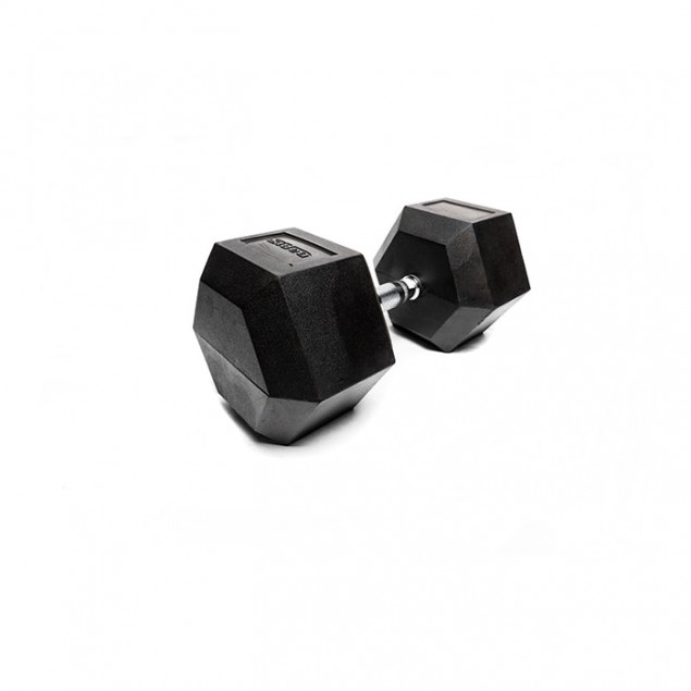 Professional fixed-weight dumbbell with hexagonal rubber-coated plates. Suitable for intense training. These dumbells are distinguished by a robust design and high-quality rubber that guarantees excellent value for money.