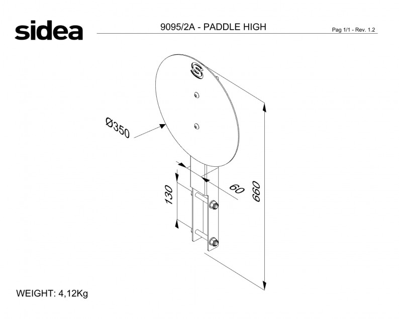 The Paddle High is an optional component of the Power Cage Rack and the Rack Station. With a diameter of 350mm, it can be bolted directly on every free upright of the Paddle (code 9095/2) at the height of 3170mm (at its highest point). The standard color is micaceous dark grey. Paddle features solid steel construction. Includes all necessary fixing/bolts. The Paddle High is an excellent way to add a final touch to your Power Cage Rack. It facilitates your training while adding accuracy to your workout.