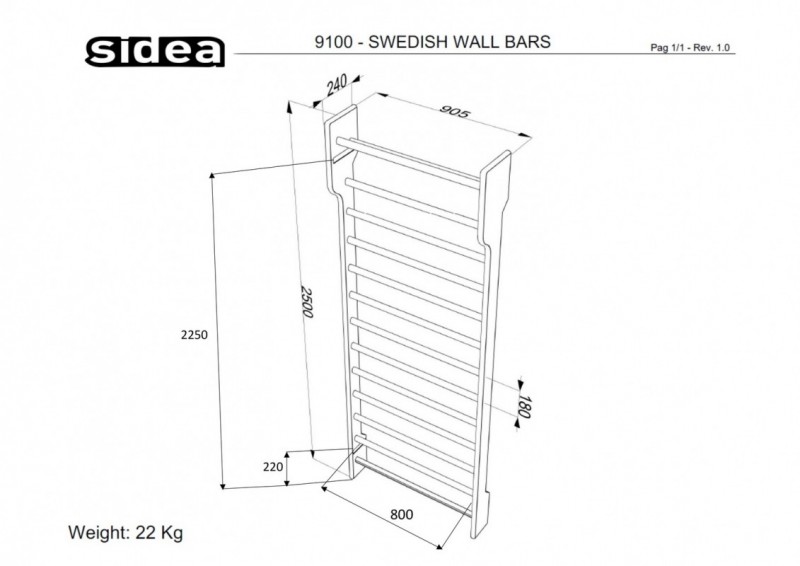 Traditional sturdy wall bar designed to facilitate the execution of training and rehab exercises. The highest pegs are made with typical two pegs solution that distinguishes the traditional shape. The oval pegs, 26-38mm diameter, are standard. The sturdiness is guaranteed by the quality of the hardwood; european beech wood, oven-dried and varnished.