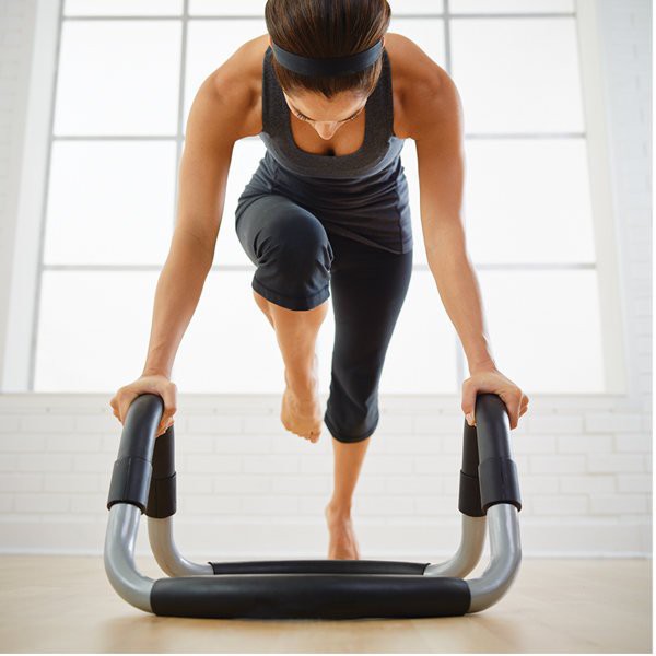 Workouts can start at a basic level then advance through a wide array of exercise variations with options to progress or regress the degree of difficulty to meet the specific needs of the individual. Its ergonomic handlebars improve already popular equipment such as the Stability Ball™, BOSU®* and TRX®.