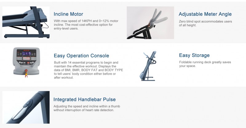 VIP home treadmill series is the best choice for start-up. It offers various function but is priced reasonably. Water bottle holder, heart rate sensors and incline are included. Moving from the gym to your own living room, users can gain pleasure to the same extent but with a price not gaining your blood pressure.